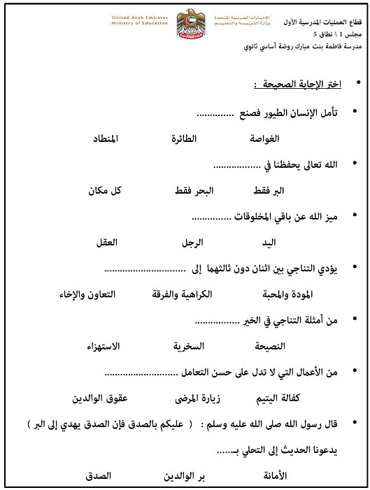 استعد لاختبار التربية الاسلامية الصف الثاني الفصل الدراسي الثالث