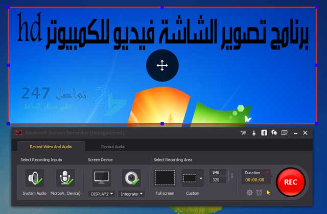 برنامج تصوير الشاشة فيديو للكمبيوتر hd عربي ويندوز 7 8 10 xp وصوت اللاب توب تحميل مباشر