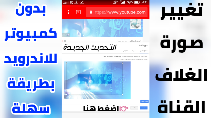 حل مشكلة تغيير صورة غلاف قناة اليوتيوب وقياسها بدون كمبيوتر